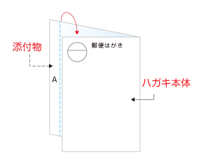 NG 郵便ハガキに添付できるものの範囲を越えているため、第二種郵便として認められません。