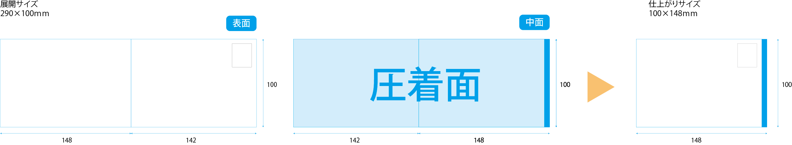 仕様:縦:100×148mm(展開サイズ194または200×148mm) or 横:148×100mm(展開サイズ290×100mm)