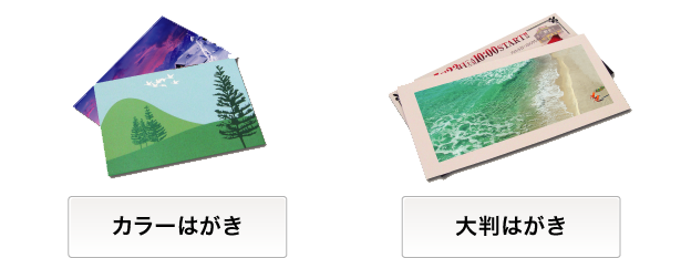 通常サイズの「カラーはがき」、定形郵便サイズで送れる「大判はがき」