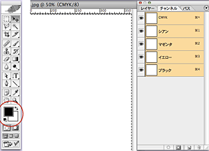 シアン1色にする場合はチャンネルパレットで「シアン」、イエロー1色なら、「イエロー」を選択します。