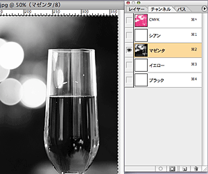 「チャンネル」パレットのマゼンダを選択した状態でペースト