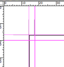 定規が出たら、定規の上から、クリックしたままドラッグすると、ガイド線が引けます。このガイド線は、画面上だけのもので、印刷には出ませんので、データを作成なさる際、作業がしやすいように、ご自由にひいていただいて構いません。