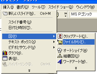 画像挿入の際には、メニューの[挿入]→[図]→[ファイルから]で挿入したい画像ファイルを選択・挿入してください。